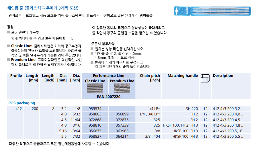 혁신적인 나선형 톱니형태의 줄로 완벽한 줄의 날세우기가 가능합니다.
