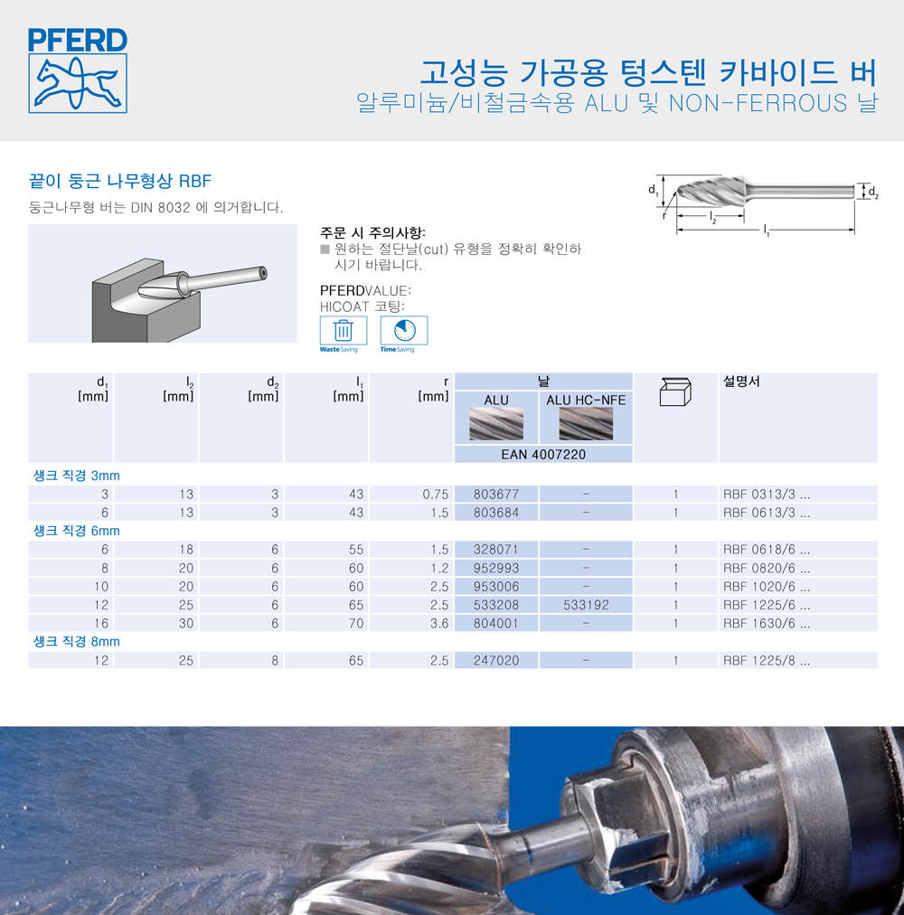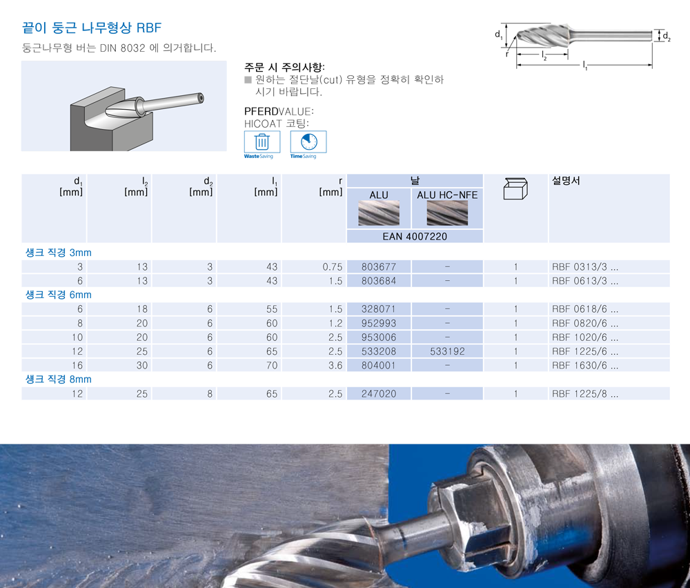 알루미늄 가공에 특화된 로타리버 RBF(SF) ALU 제품입니다.